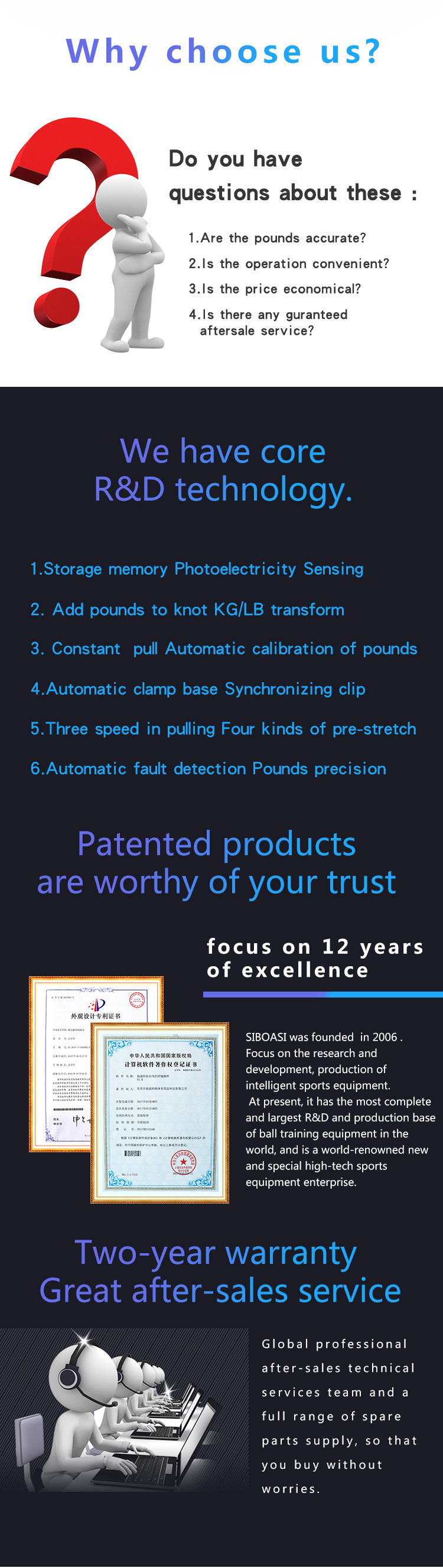 - Im Vergleich zum Modell S516 besteht der einzige Unterschied darin, dass die Maschine für Badminton- und Tennisschläger sowie Squashschläger geeignet ist (Squashschläger sind optional, falls gewünscht, wenden Sie sich bitte an unsere Verkäufer).