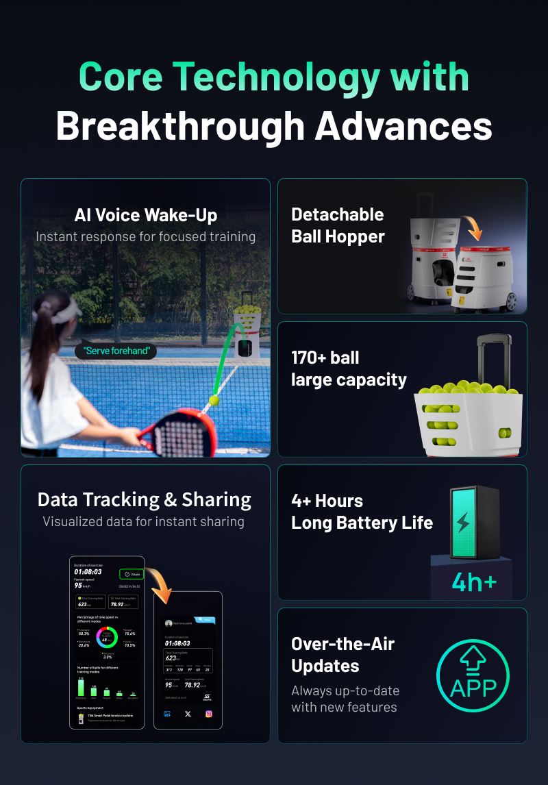 Product Hightlights for TB6 padel tennis ball machine: