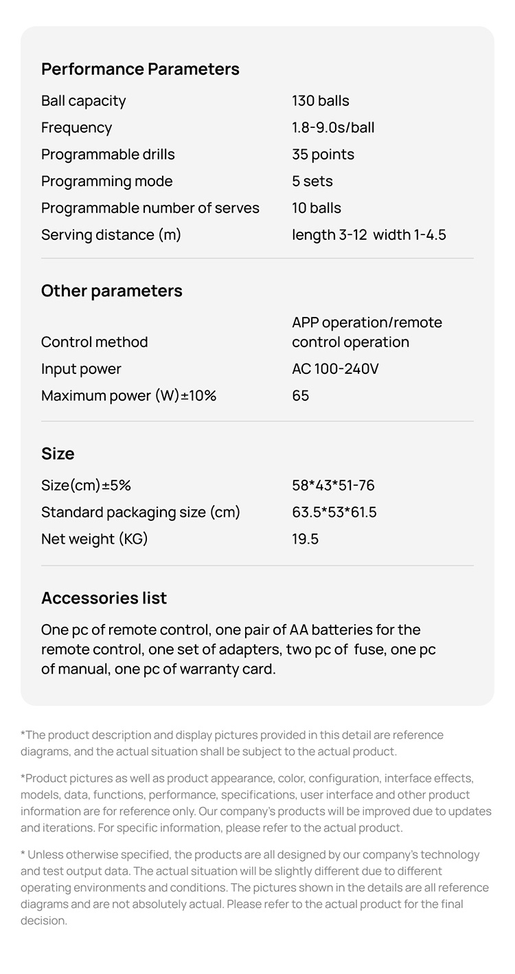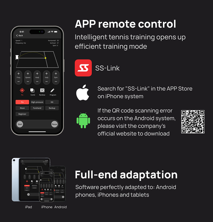 | Model: | SIBOASI T2402A Tennis training feeder (Indoor) | Control Type: | Both Mobile App Control and remote control |